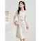 德玛纳【设计感假两件】夏季轻薄慵懒立体剪花无腰线直筒压褶女式连衣裙